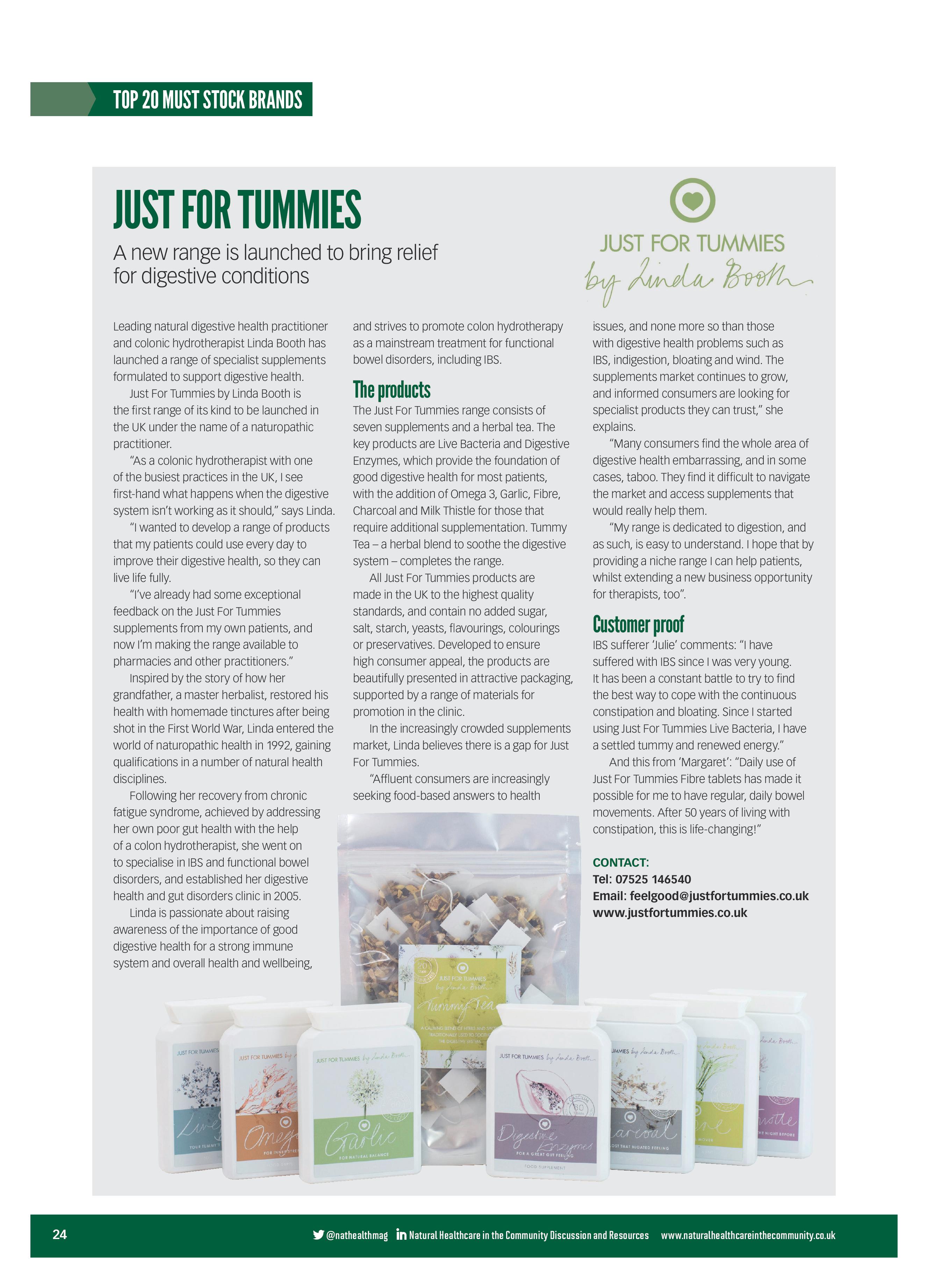 Just For Tummies in the Top 20 Must Stock Brands Just For Tummies featured in the Top 20 Must Stock Brands of the Natural Healthcare and Community Magazine 2015