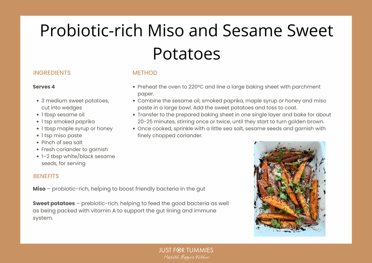 As the days grow shorter and the air starts to turn crisp (signalling my absolute favourite time of the year), we need to start thinking about how to nourish our bodies from the inside out. Autumn is nature’s reminder to slow down, get cosy, and prepare our immune systems for the cooler months ahead. While we can’t dodge every cough or sniffle, we can give our bodies a head-start with meals that support gut health – because a happy gut is one of your best defences. For the changing season, we have put together this brand new, easy to prepare recipe – Probiotic-rich Miso and Sesame Sweet Potatoes. Yum!